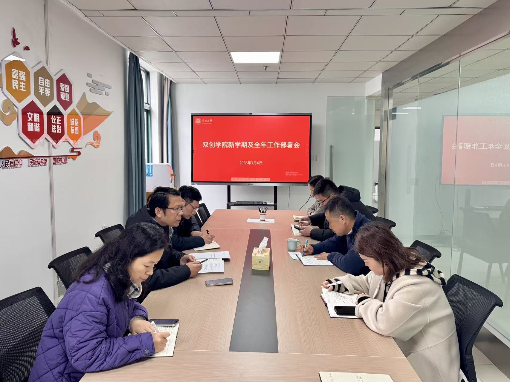 3月6日上午,双创学院召开部门工作会议,传达学习2026年江苏省教育工作会议、中国共产党常州大学第三届委员会第八次全体(扩大)会议、常州大学第十届教职工代表大会暨第十二届工会会员代表大会第四次会议精神,并详细部署了新学期及2026年全年工作。双创学院院长张小远主持会议。